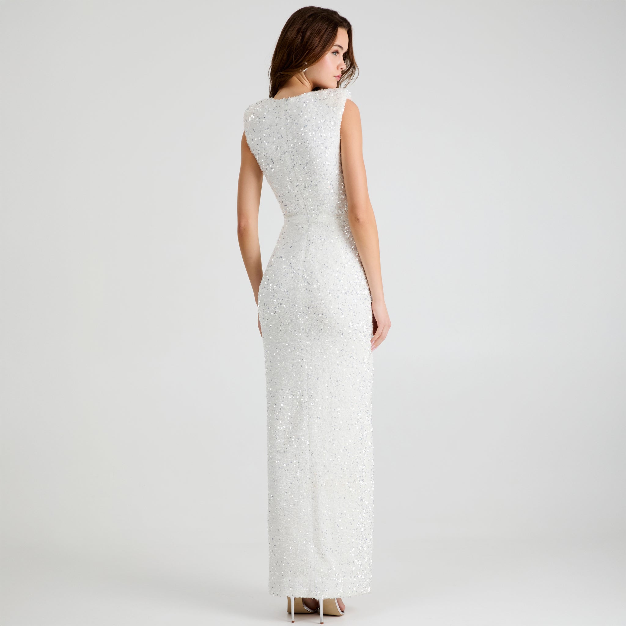 3D Floral Plunging Neckline Sequin Gown
