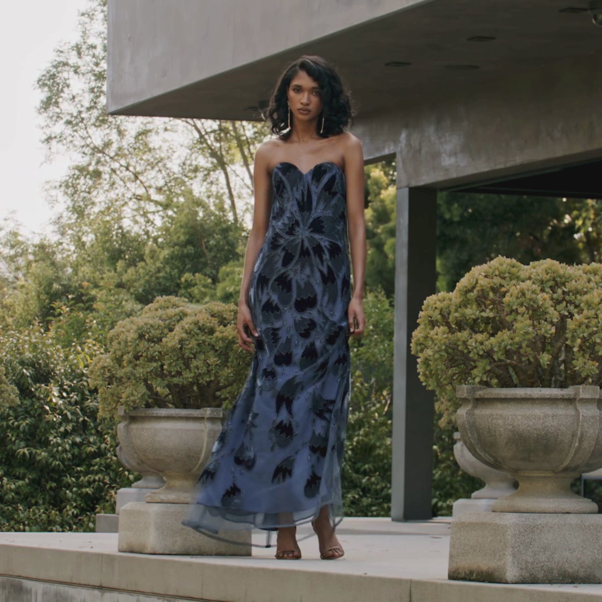 FLORAL STRAPLESS SWEATHEART NECK GOWN