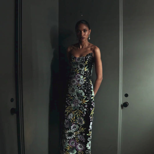 STRAPLESS POINTED SCOOP NECK DRESS