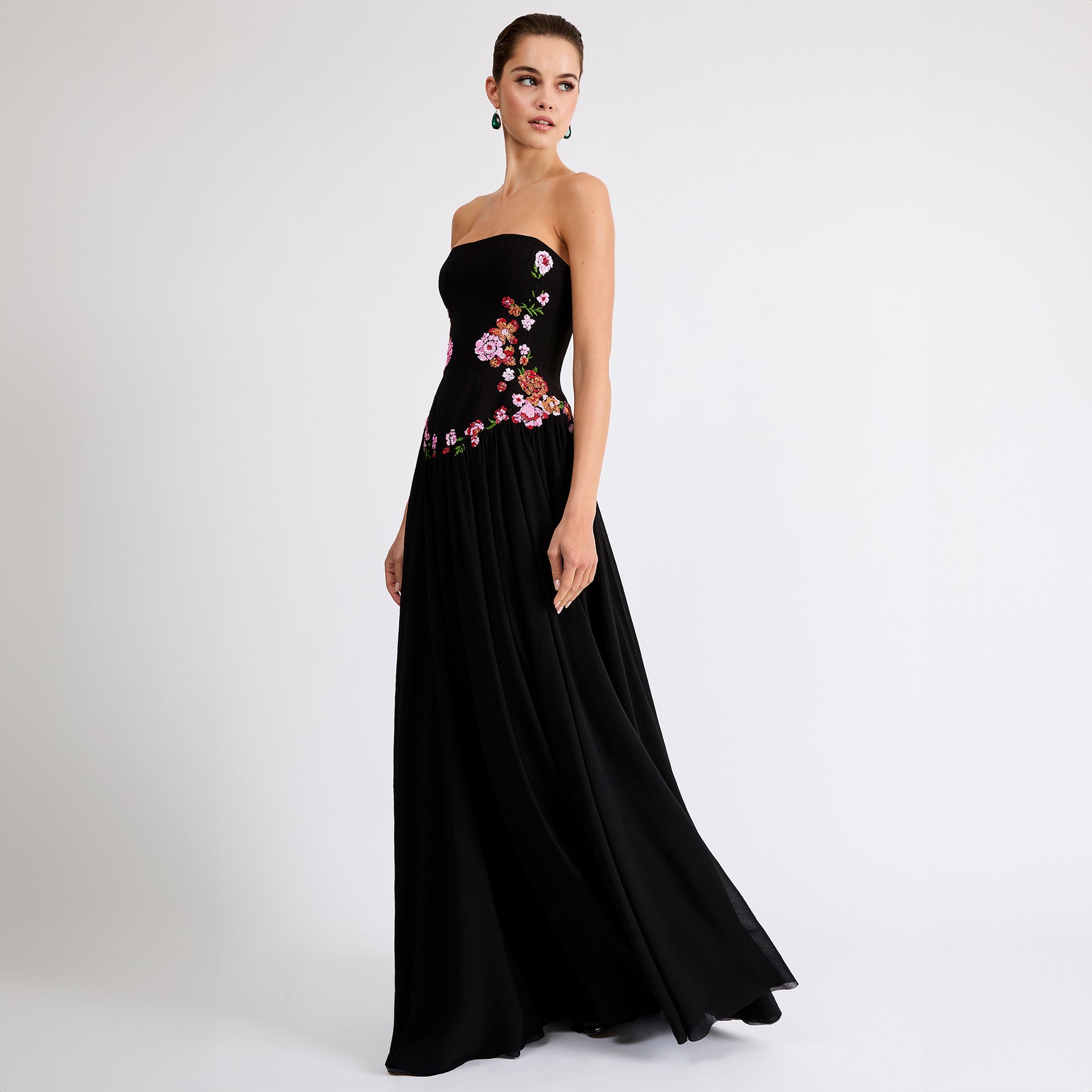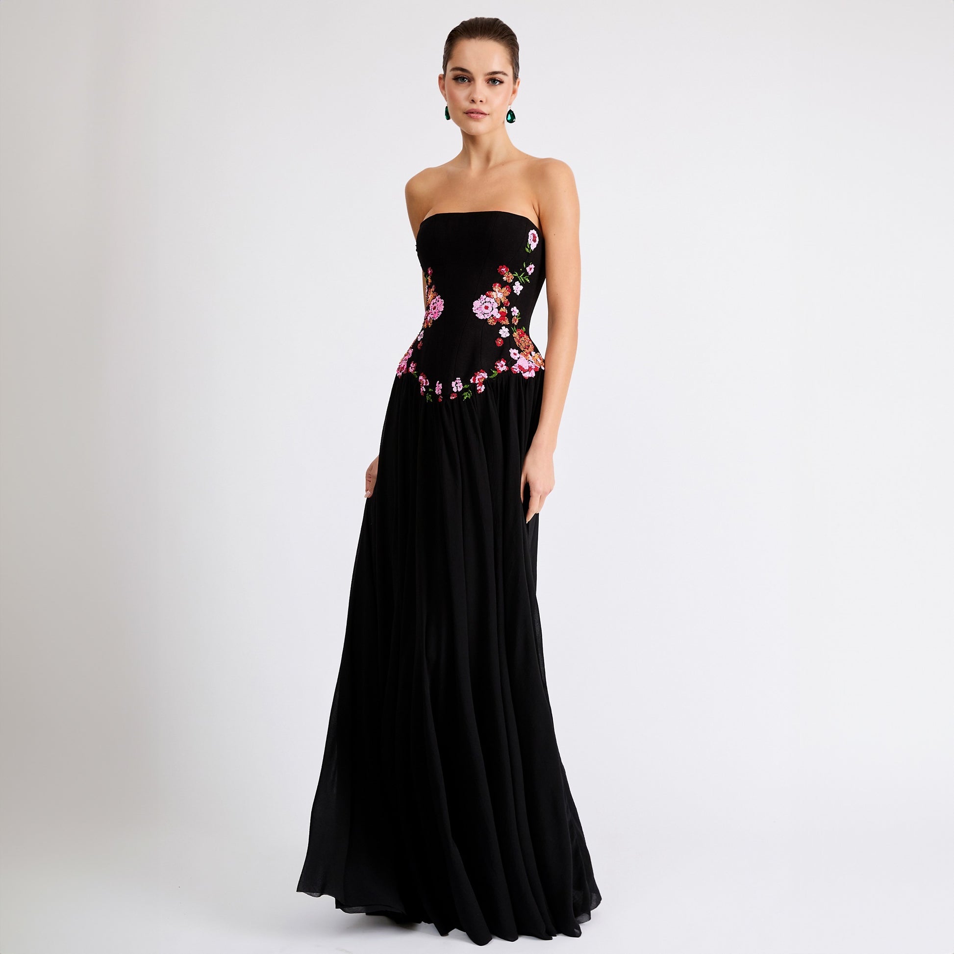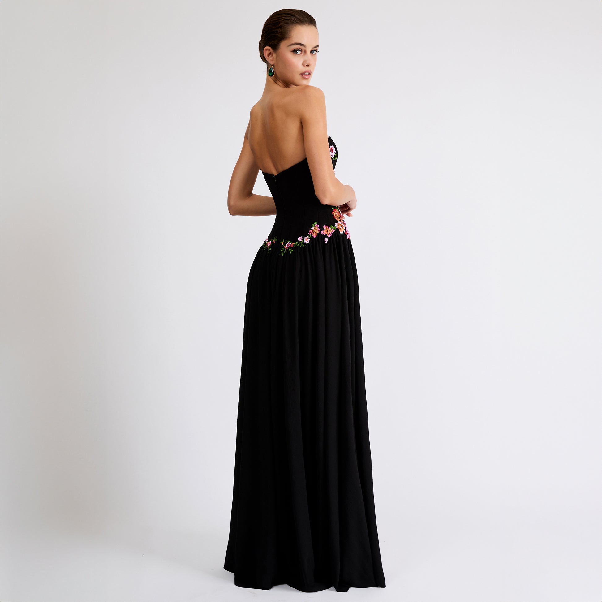 STRAPLESS CORSET GOWN with FLORAL APPLIQUE