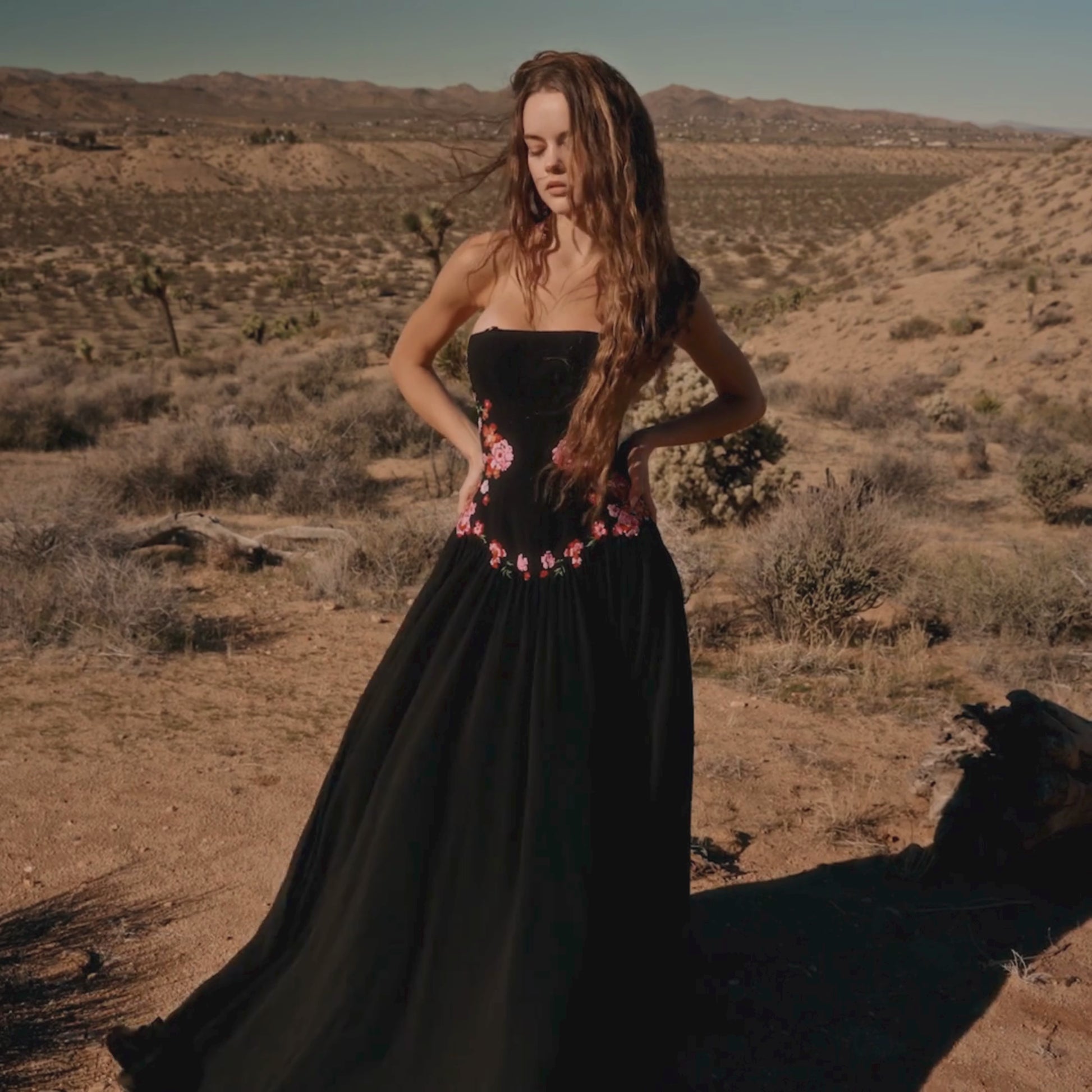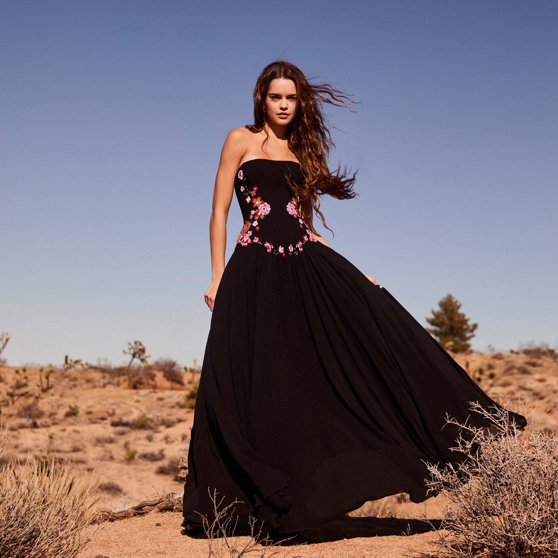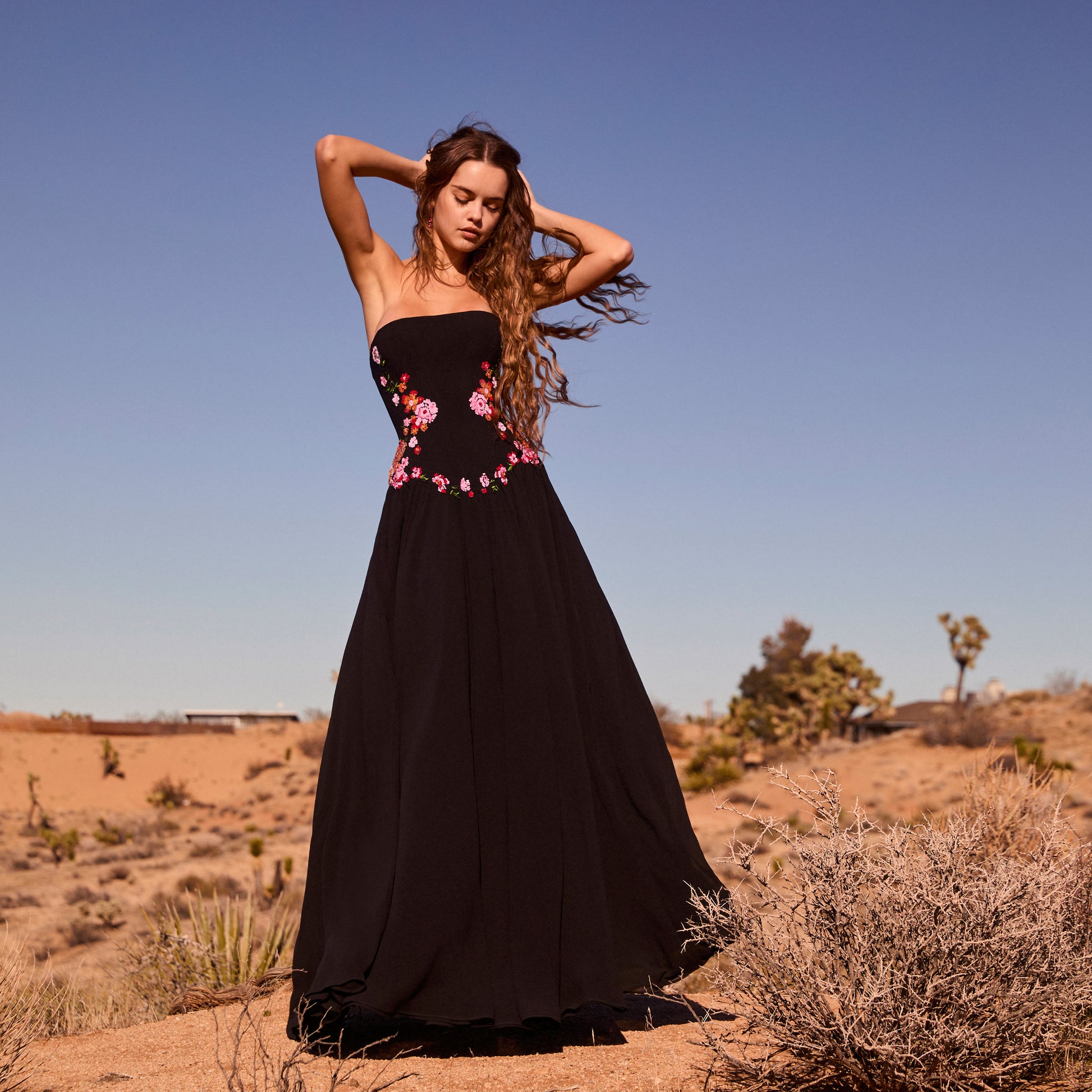 STRAPLESS CORSET GOWN with FLORAL APPLIQUE