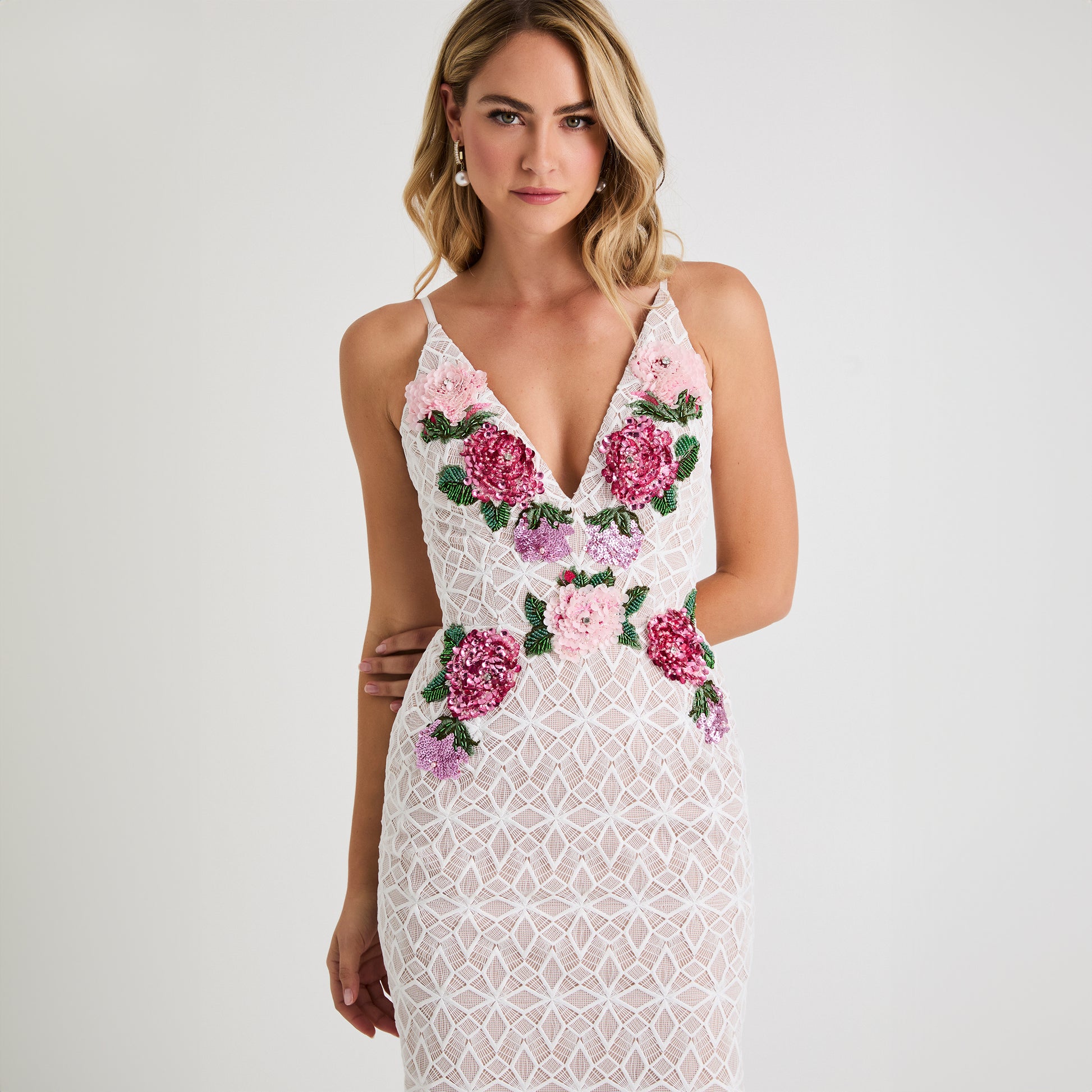 FLORAL EMBROIDERED LACE MIDI DRESS