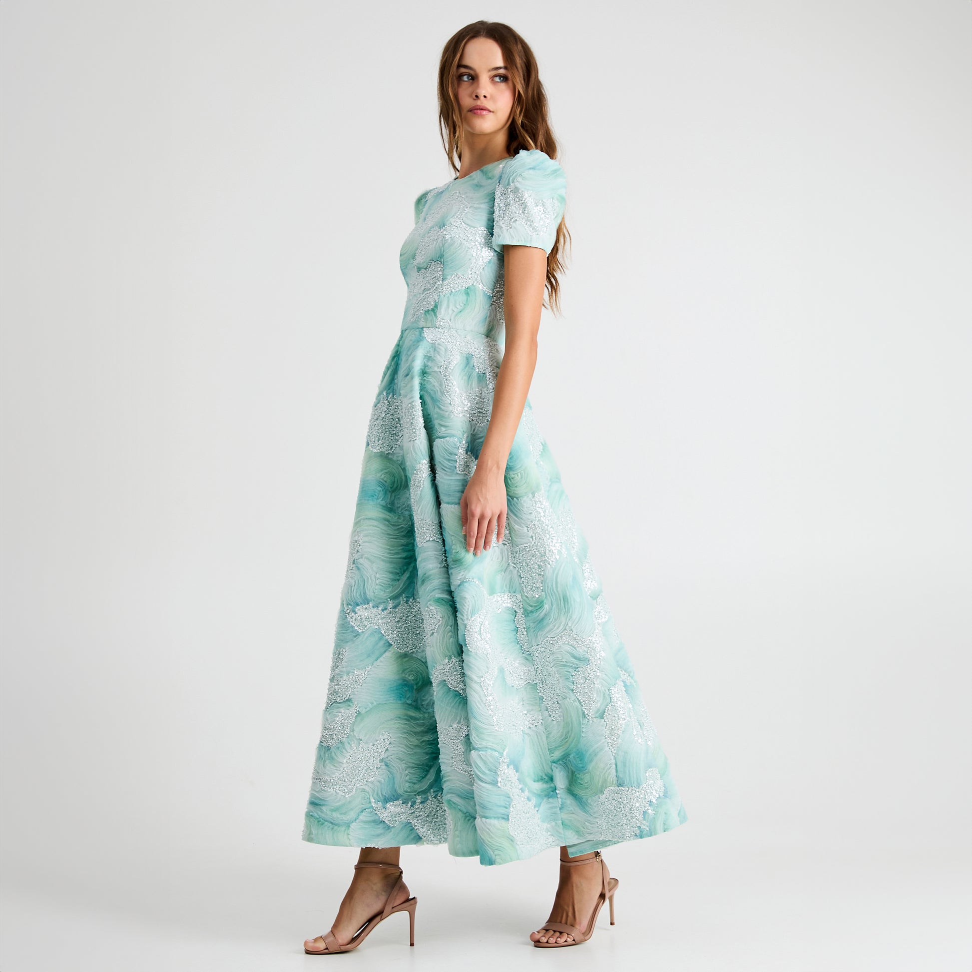 SHORT SLEEVE FLORAL GOWN