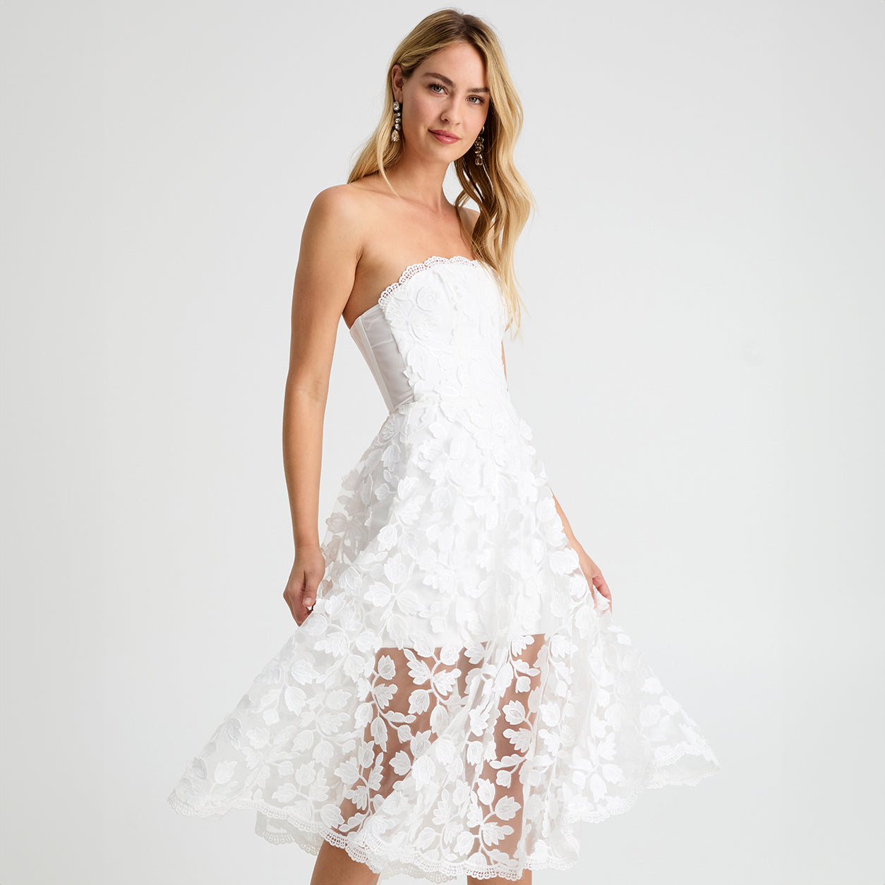 Scallop detail on bodice and hem