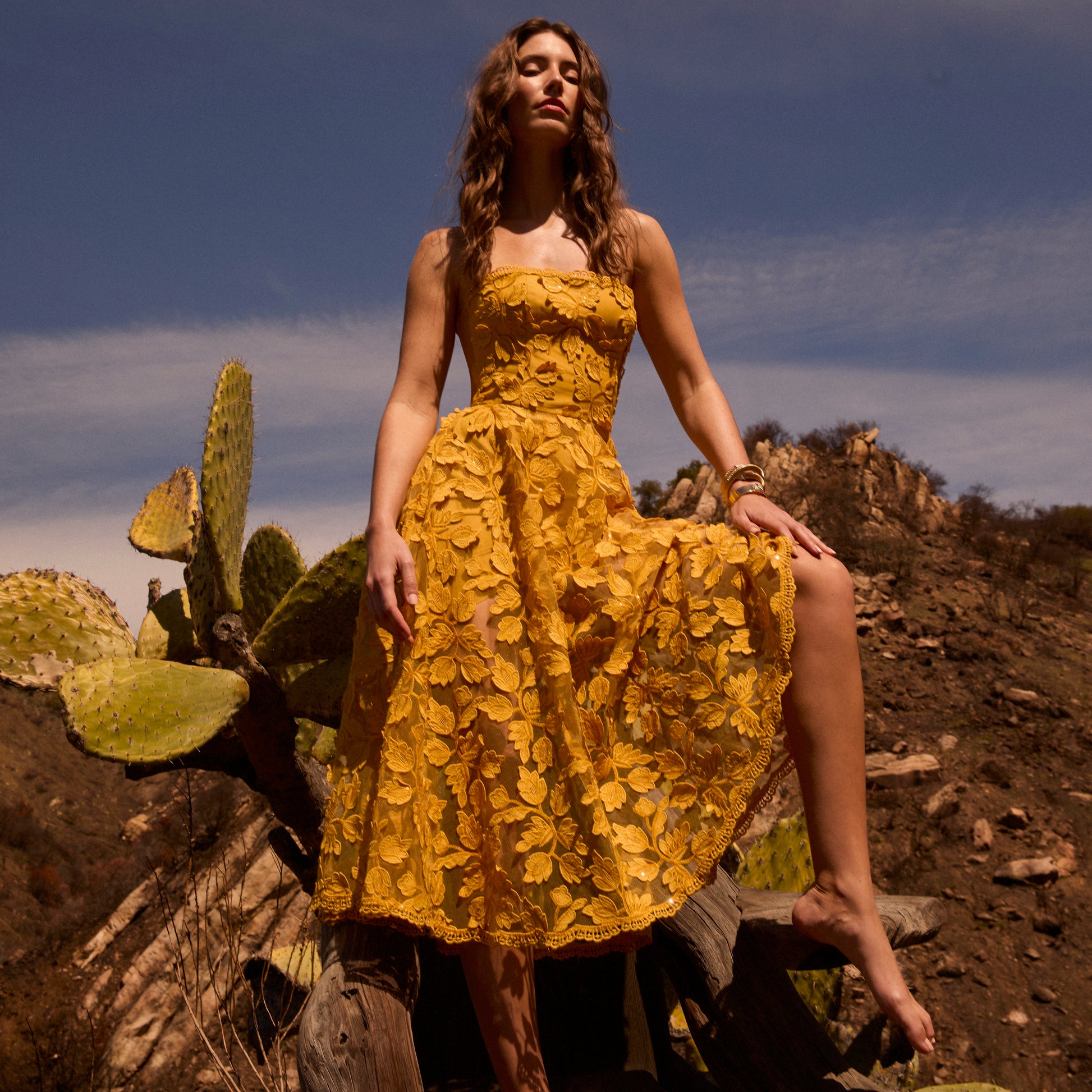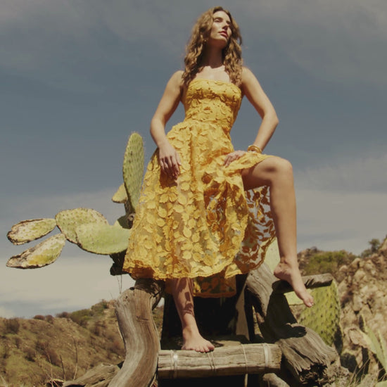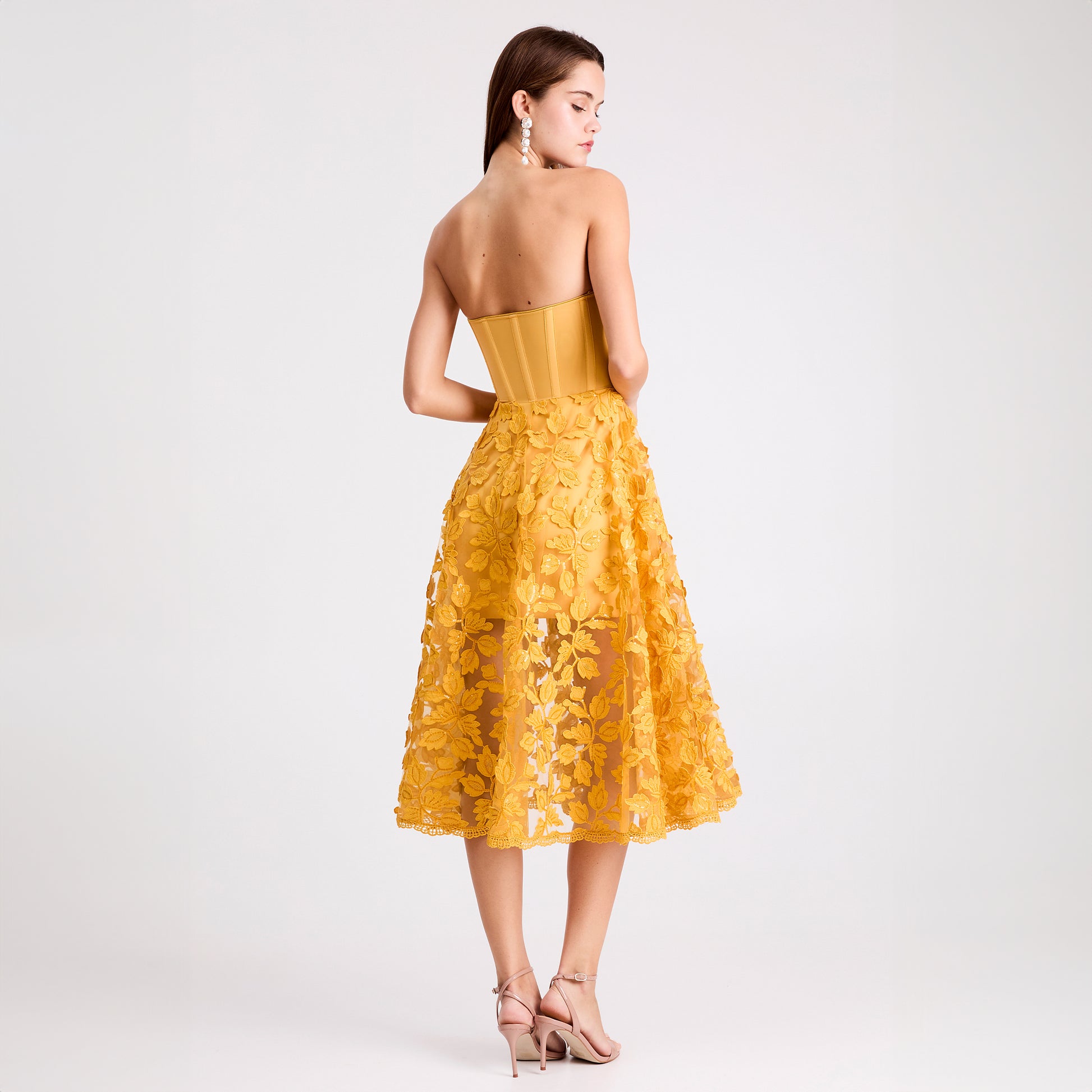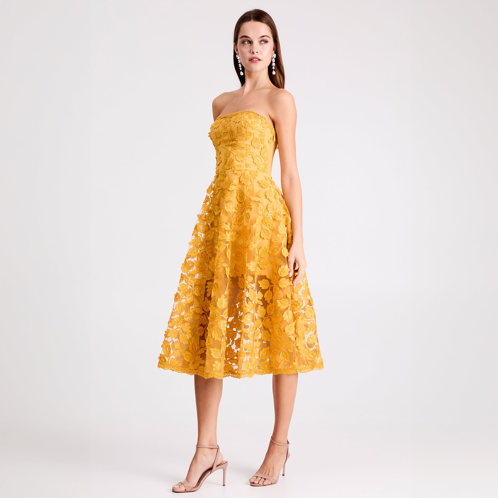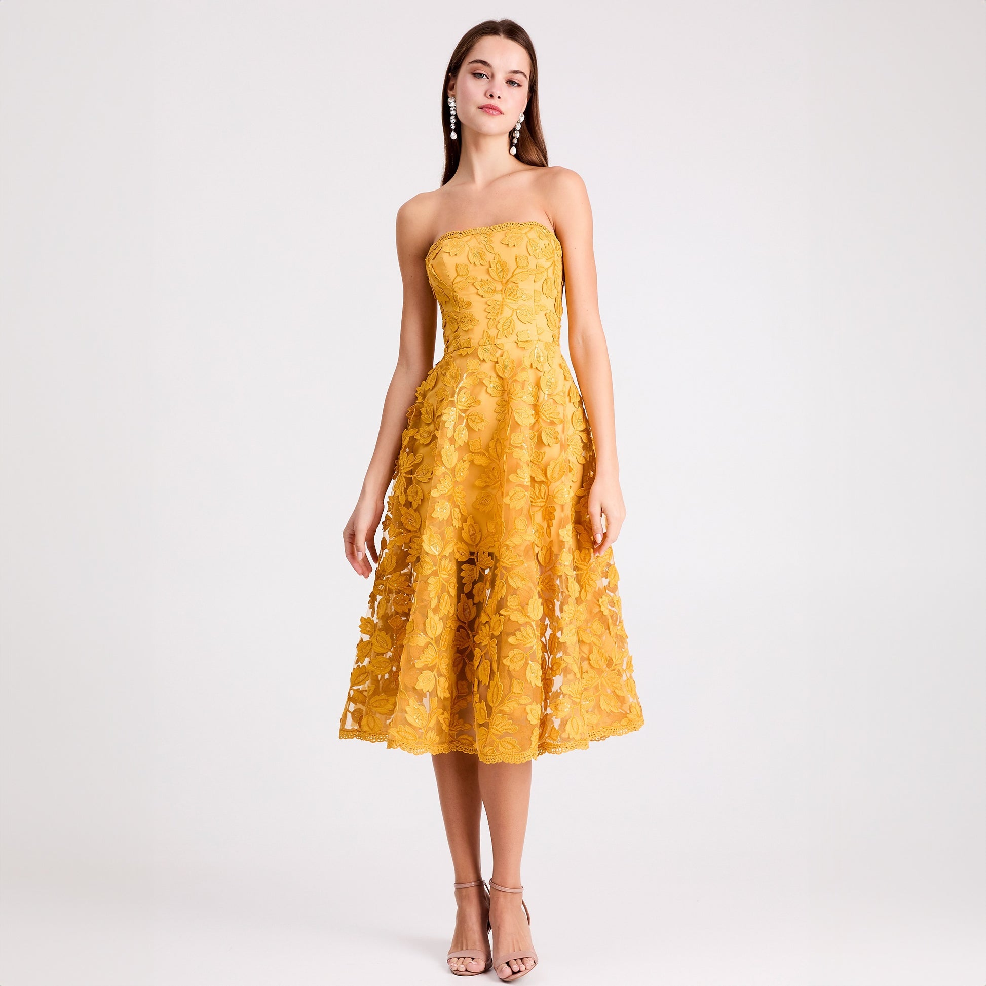 3-DIMENSIONAL FLORAL STRAPLESS MIDI DRESS