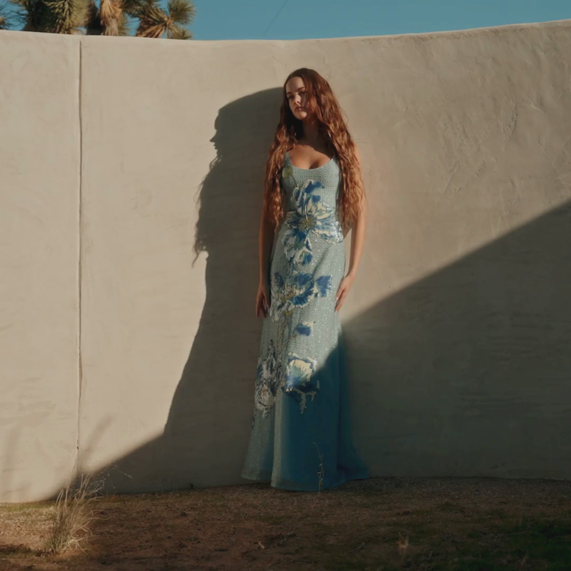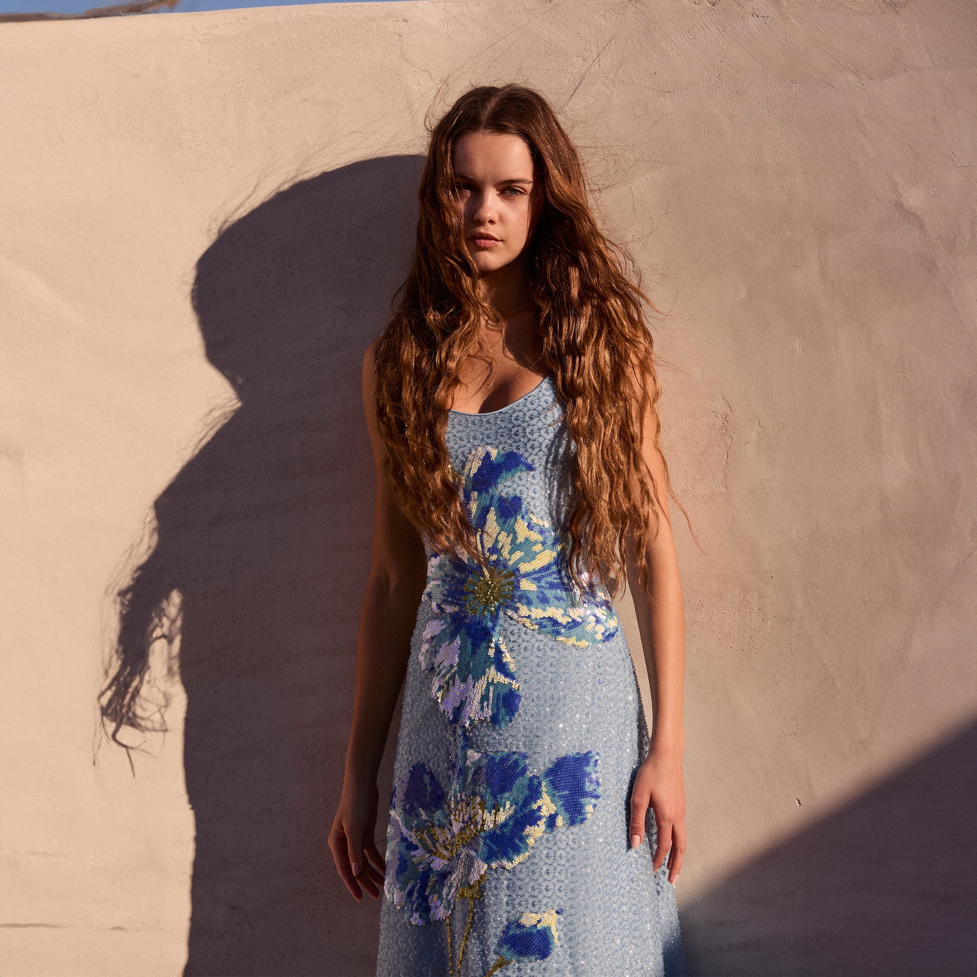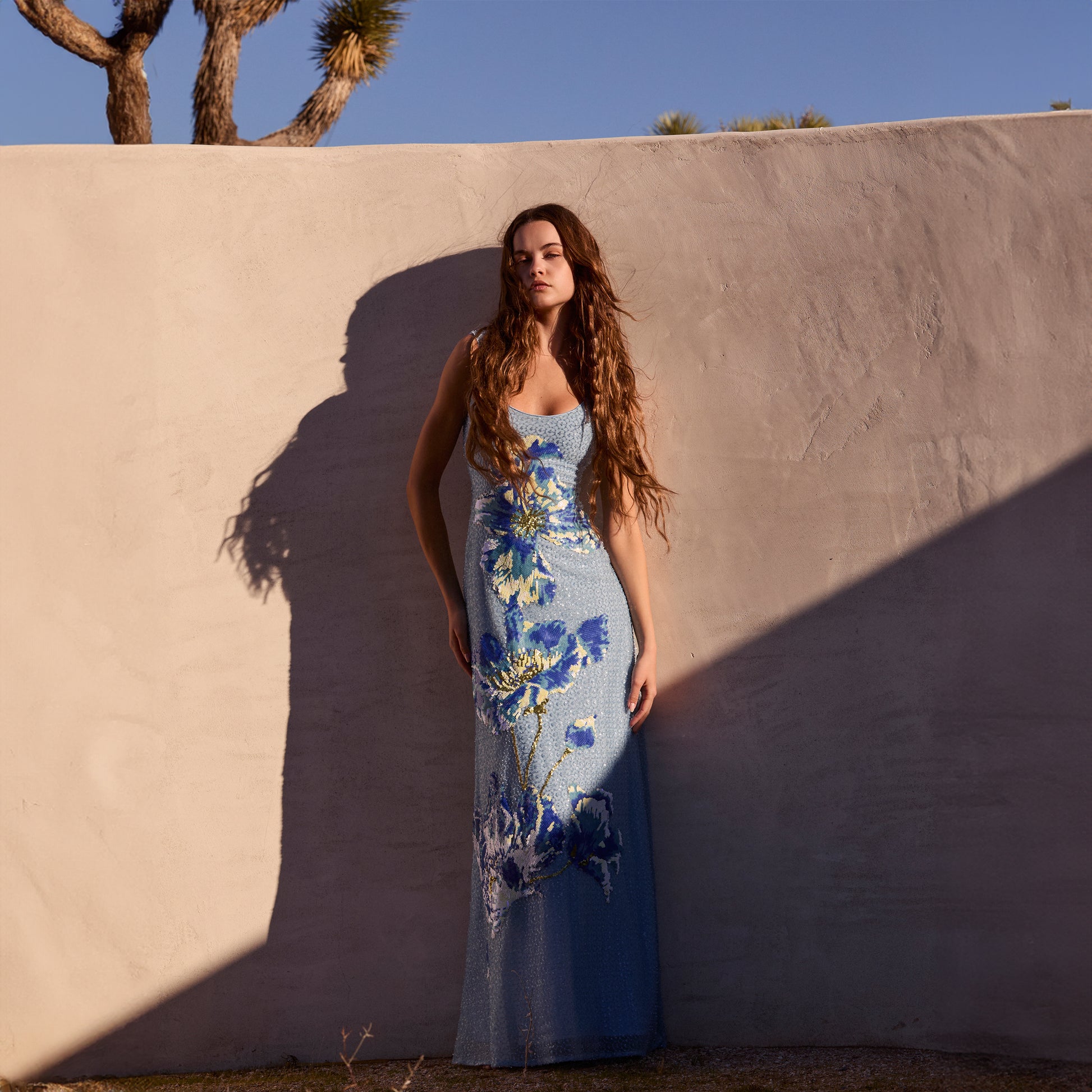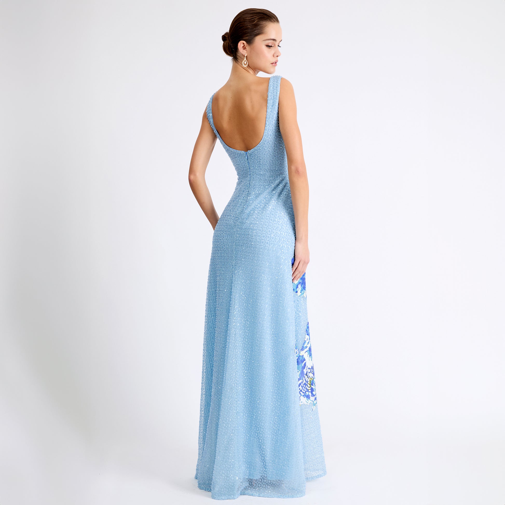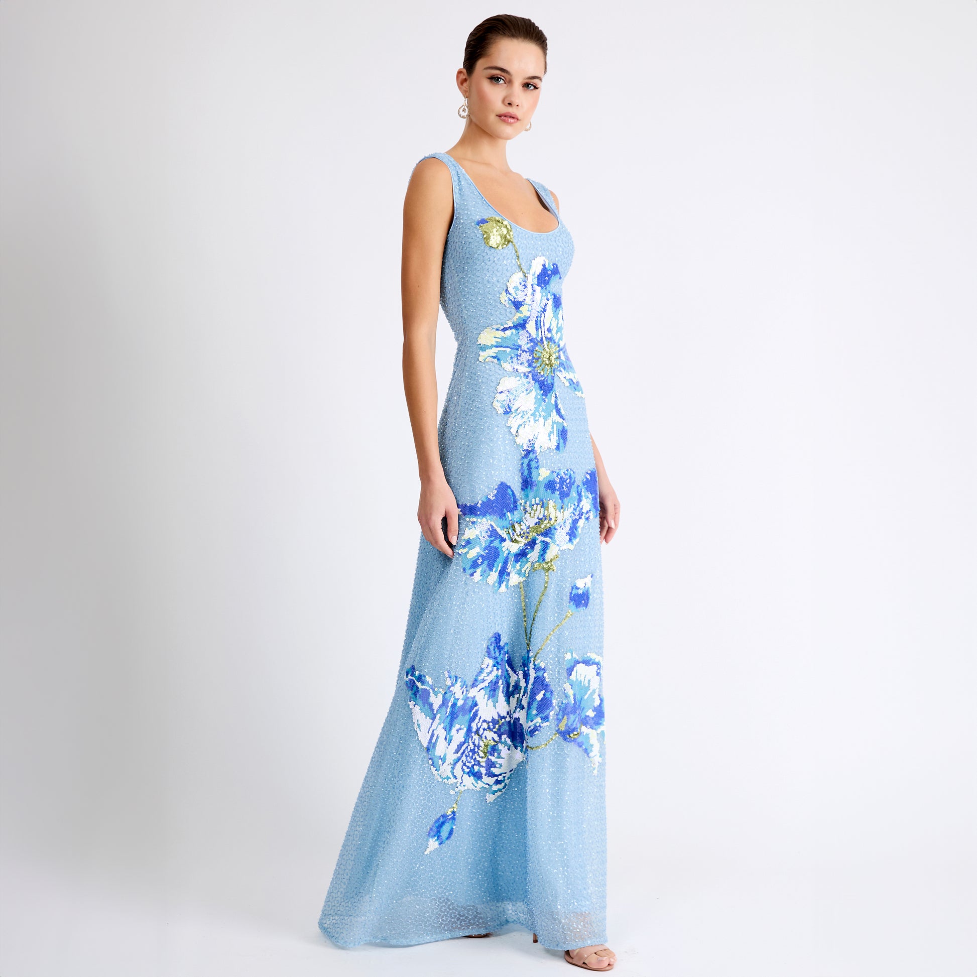 SEQUIN SCOOP NECK TANK GOWN W/ FLORAL APPLIQUE