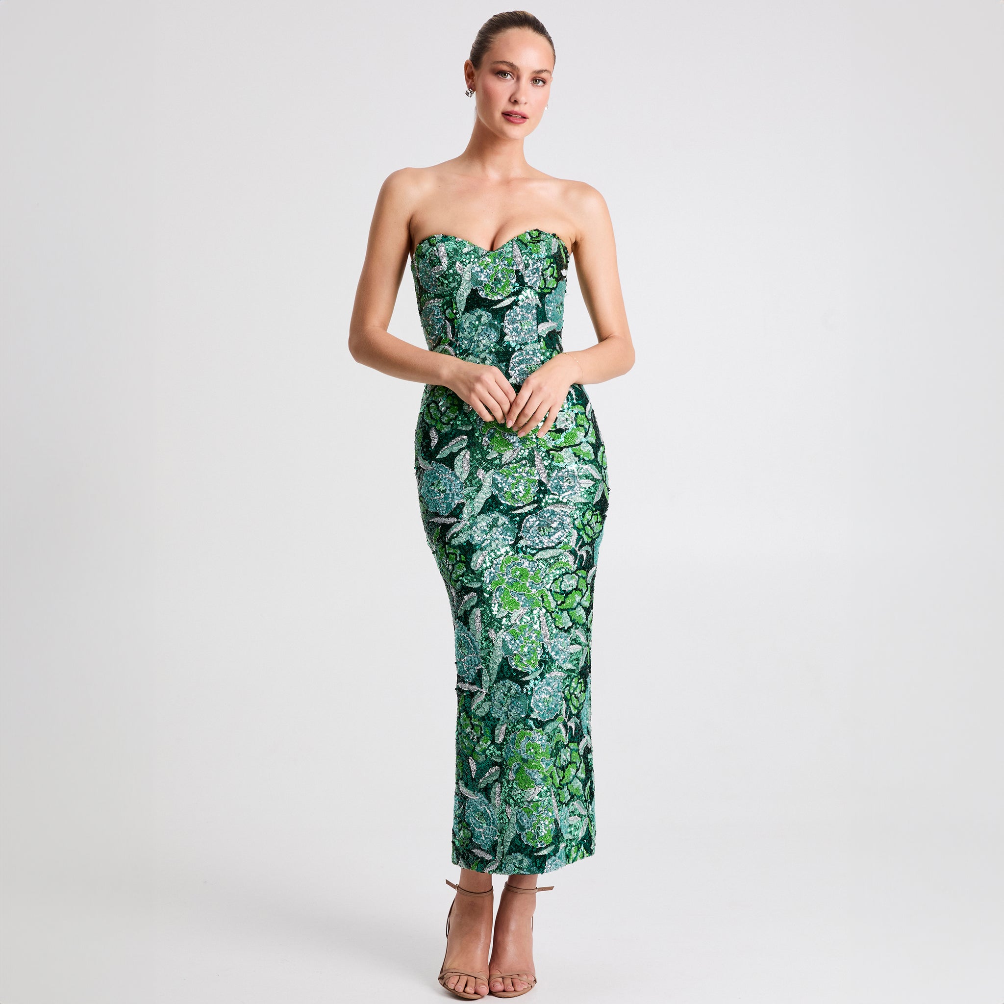 STRAPLESS SWEETHEART FLORAL GOWN