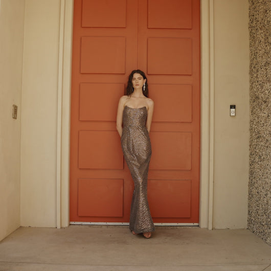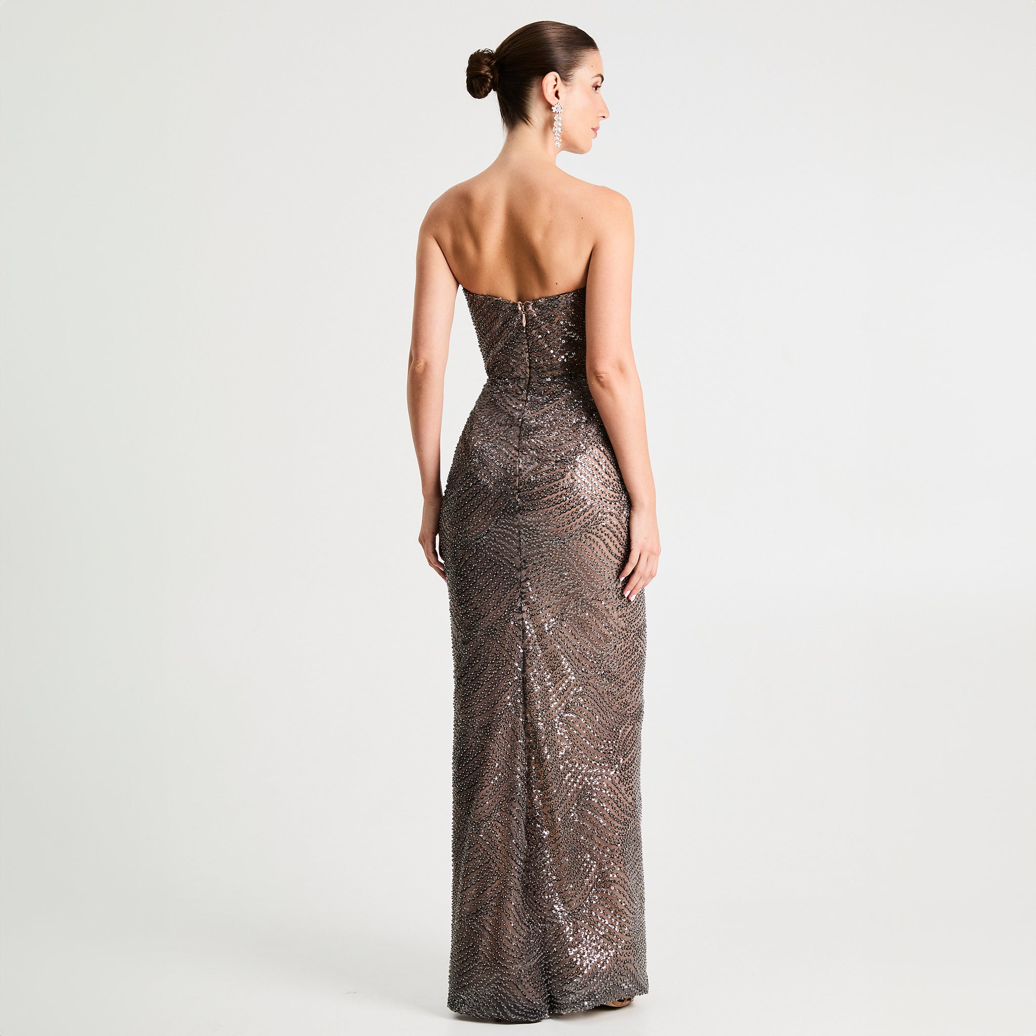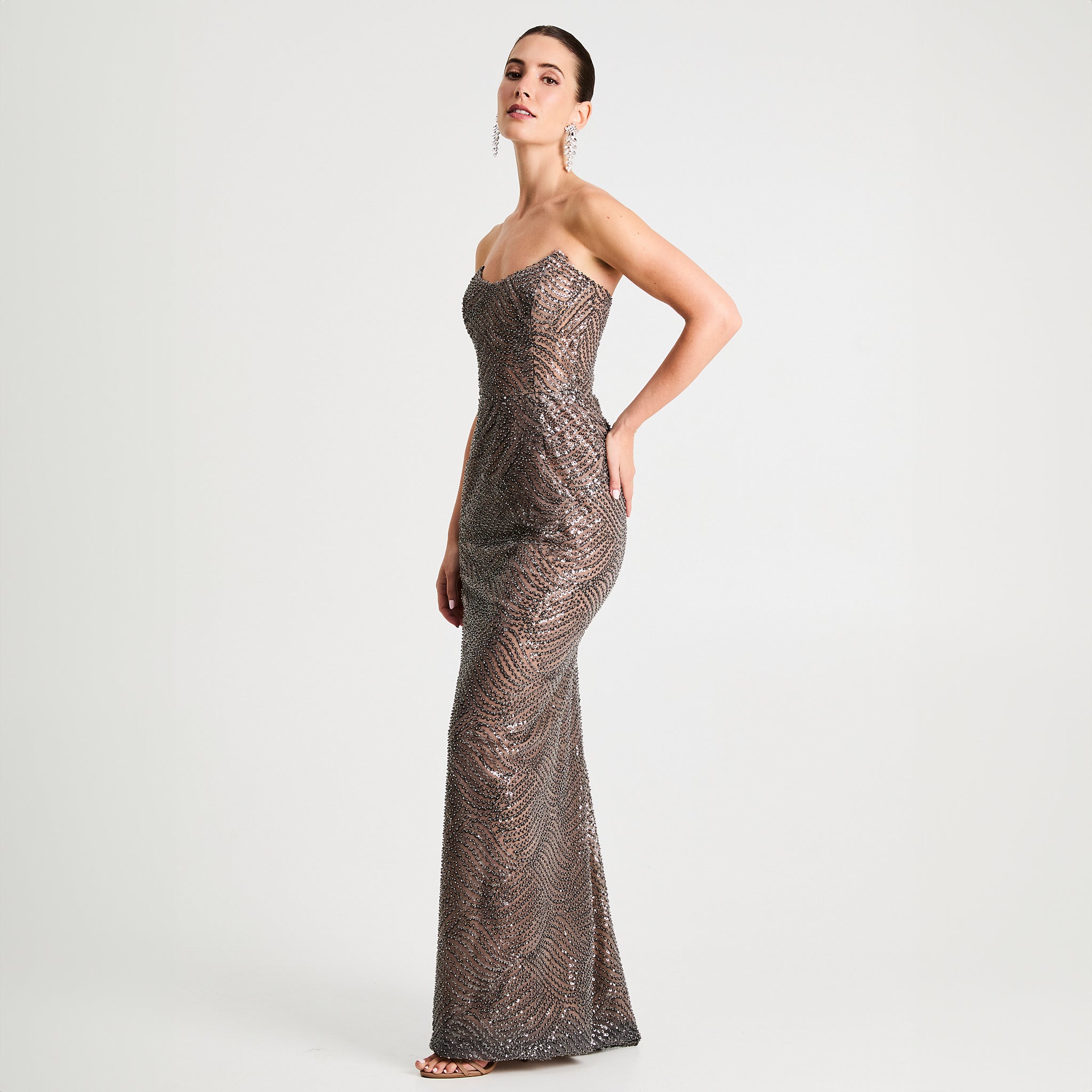 POINTED NECKLINE STRAPLESS GOWN