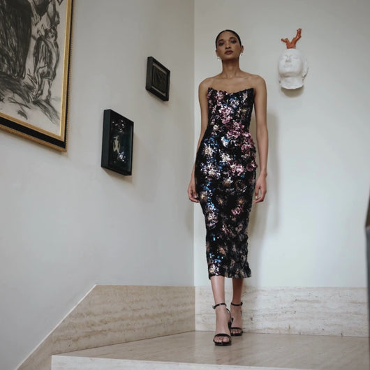 STRAPLESS SCOOP NECK SHEATH DRESS