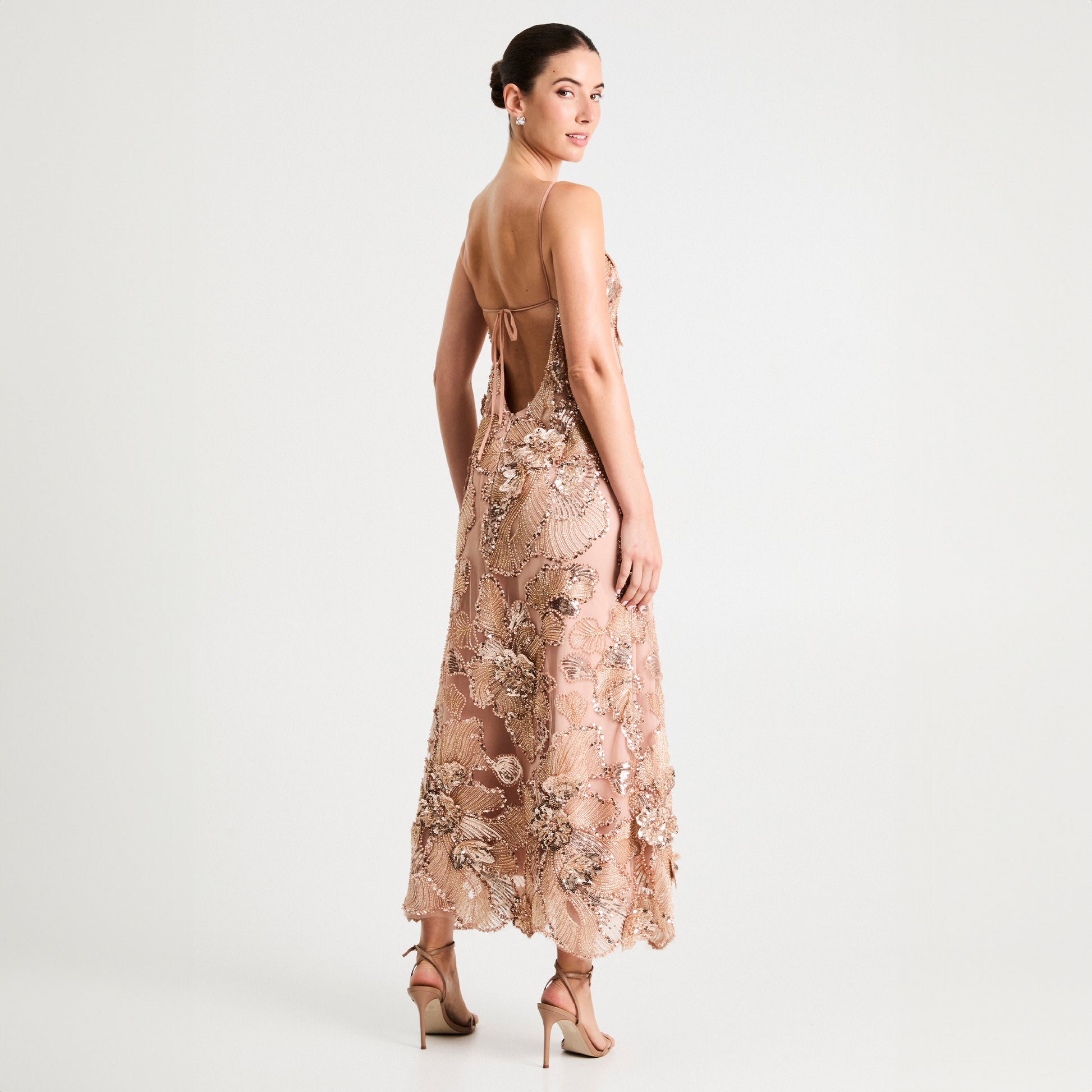 FLORAL V-NECK TIE BACK MAXI DRESS