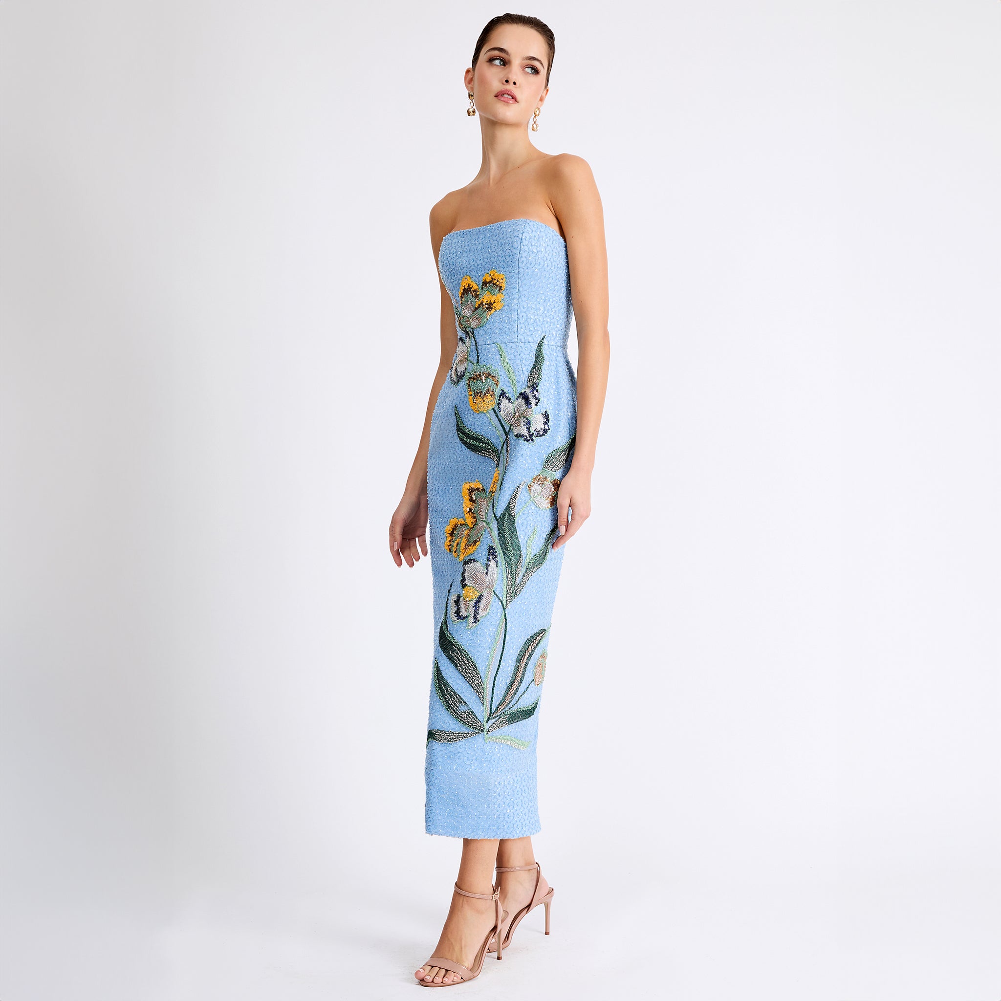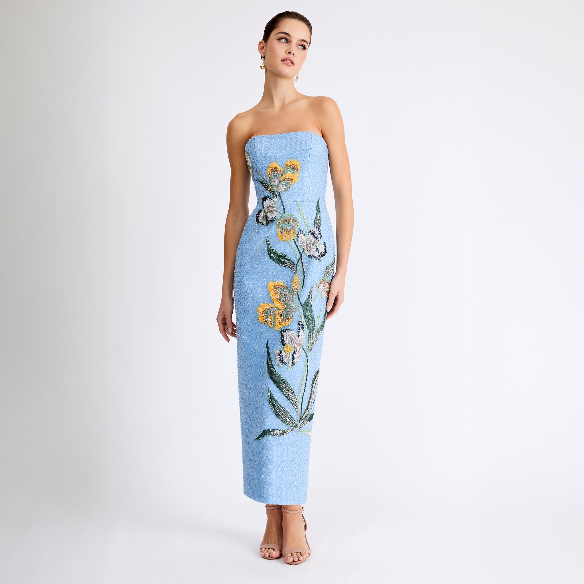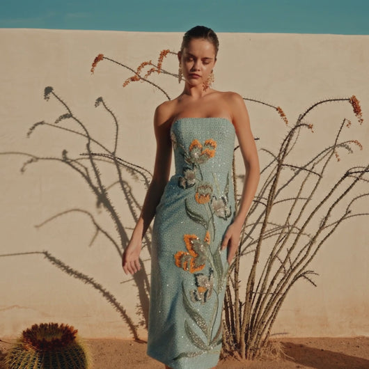 Strapless Beaded Floral Gown