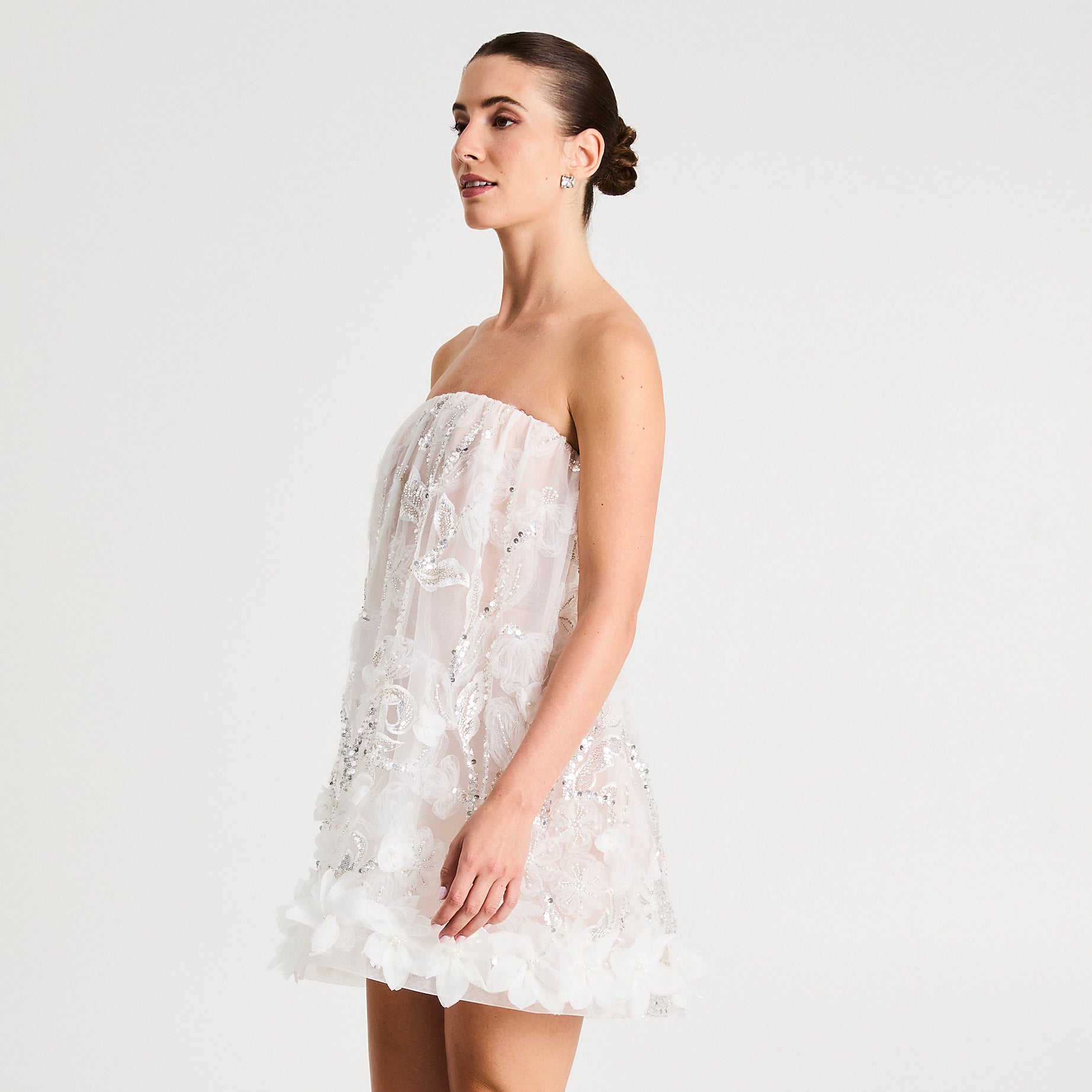 MINI FLORAL SEQUIN BABYDOLL DRESS